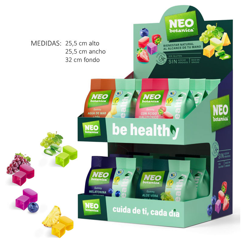 También Expositor con 24 bolsas, 6 de cada uno de los 4 Gummys: