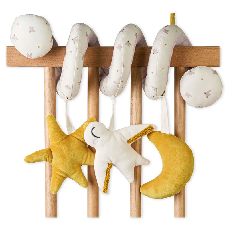 Inseparable compañera de juegos que esconde divertidos secretos para poner la imaginación en marcha. Puedes enrollarla en la cuna, la sillita de paseo o en cualquier otro sitio, divirtiendo al bebé allí donde esté.
