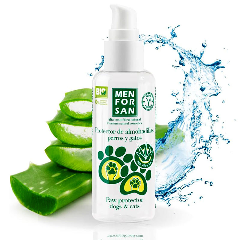 Gel Protector de las Almohadillas de Perros y Gatos, Menforsan 60ml., con Aloe Vera, 100% Natural. Hidrata. Calma y repara. Rápida Abrsorción. Protege las almohadillas del frío y del calor, evitando agrietamientos y aumentando la resistencia al roce. El Aloe Vera ayuda con la cicatrización y reparación de las heridas. En Menforsan productos naturales vegan friendly de la mejor calidad.